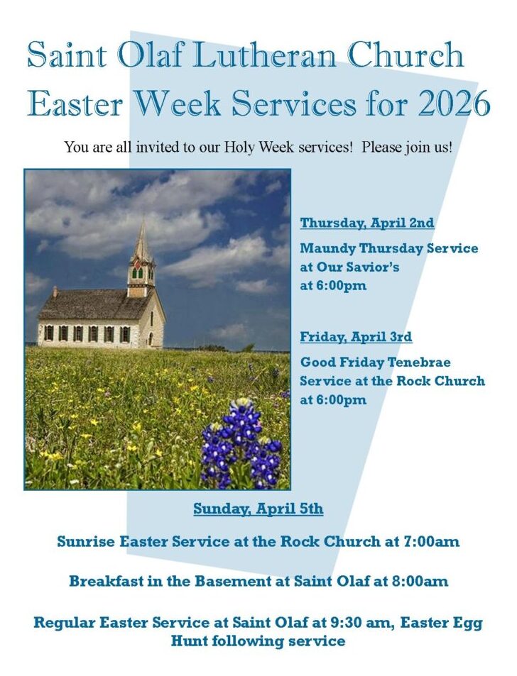 St. Olaf Lutheran Church exists to worship, teach, nurture, and share Christ’s love.